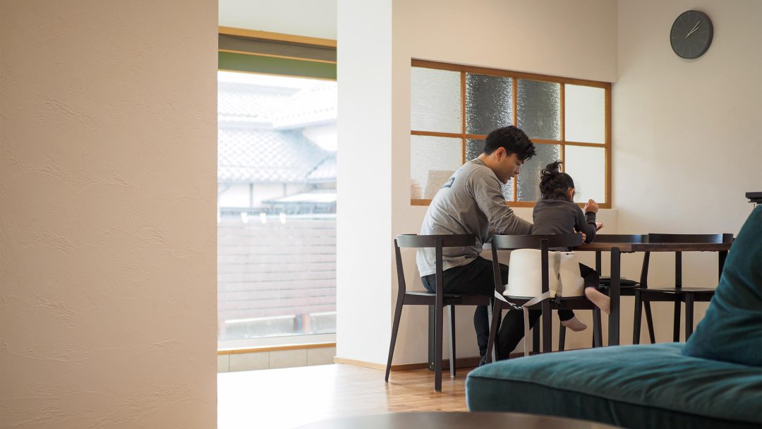 as oneのコンセプトハウスが彦根市内に誕生しました。四季の移ろいを感じながら子どもとのびのびと暮らすことができるこの家は、高性能住宅・自然素材の家・庭づくりを考えるきっかけになるようにとas oneの大工が考え、自身で建てた自邸です。
