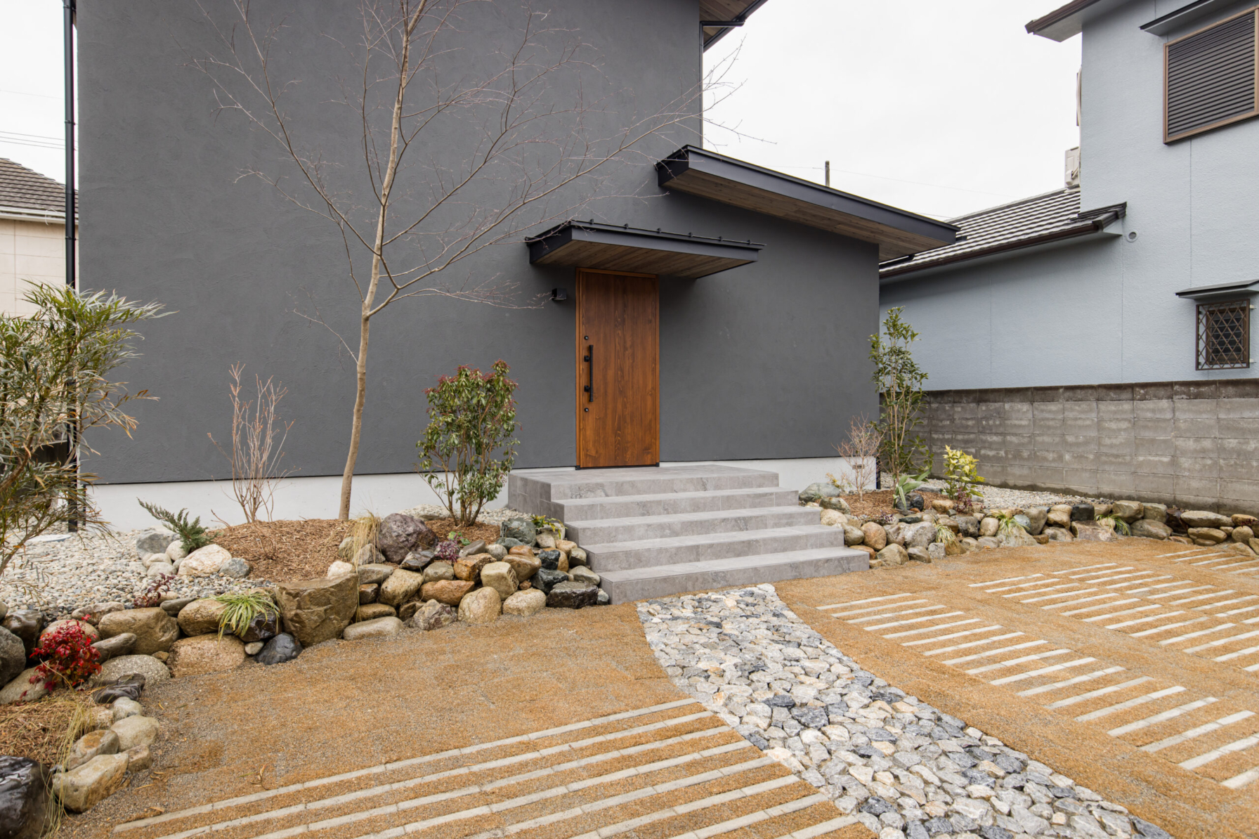 素材にこだわった外構